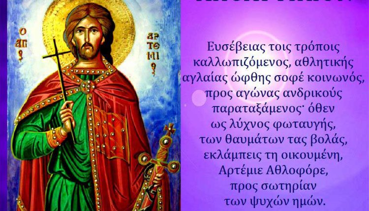 Ο Άγιος Αρτέμιος ο Μεγαλομάρτυρας, τιμάτε σήμερα 20 Οκτωβρίου, από την Εκκλησία μας.