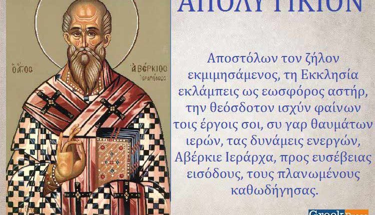 Συναξάρι 22-10, Όσιος Αβέρκιος Ο Ισαπόστολος Και Θαυματουργός Επίσκοπος Ιεράπολης