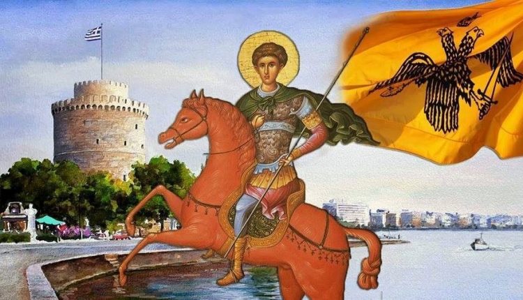 Υπερήφανον δράκοντα, καθ’ημών τα χείρονα τεκταινόμενον, κατασύντριψον Δημήτριε, τη κραταιοτάτη προστασία σου.
