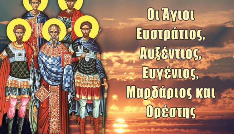 Οι Άγιοι Ευστράτιος, Αυξέντιος, ΕυγένιοςΜαρδάριος και Ορέστης μαρτύρησαν κατά το σκληρό διωγμό των χριστιανών επί Διοκλητιανού. Ο Ευστράτιος, που ήταν ανώτερος αξιωματικός, συνελήφθη από το Δούκα Λυσία. Αυτός, αφού τον βασάνισε με τον πιο φρικτό τρόπο, έπειτα τον έστειλε στον έπαρχο Αγρικόλα. Φημισμένος αυτός για την ωμότητα του απέναντι στους χριστιανούς, έβαλε τον Ευστράτιο να βαδίσει με σιδερένια παπούτσια, που είχαν μέσα μυτερά καρφιά. Κατόπιν τον αποτελείωσε, αφού τον έριξε μέσα στη φωτιά.