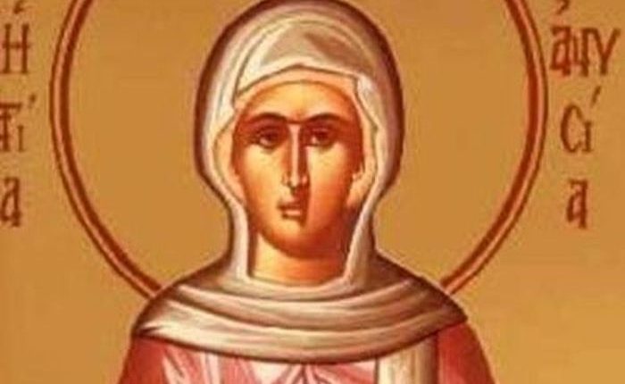 The Holy Righteous Martyr Anysia. She lived during the reign of emperor Diocletian (298 AD) and came from Thessaloniki. She confessed that believes in the One and True God. Afterwards, a soldier drew his sword and pierced her side.