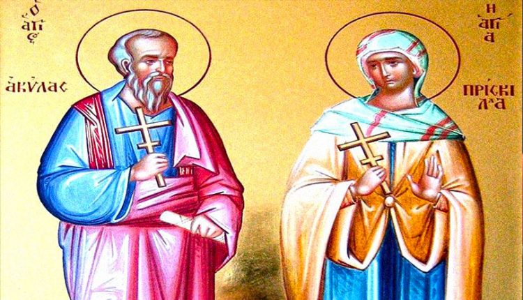 Ακύλας και Πρίσκιλλα. Ιουδαίοι σκηνοποιοί από τον Πόντο που έφυγαν από τη Ρώµη εξαιτίας των διωγµών, συνεργάτες του Αποστόλου Παύλου στην Κόρινθο, αποτελούν υπόδειγµα ζεύγους.