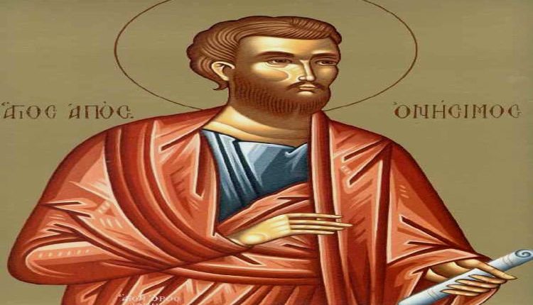 Άγιος Απόστολος Ονήσιµος. Ένας από τους Εβδοµήκοντα Αποστόλους, συνεργάτης του Αποστόλου Παύλου, µετά τη βάπτιση του στη Ρώµη. Μαρτύρησε στους Ποτίολους το 109.